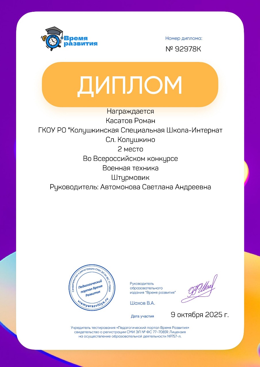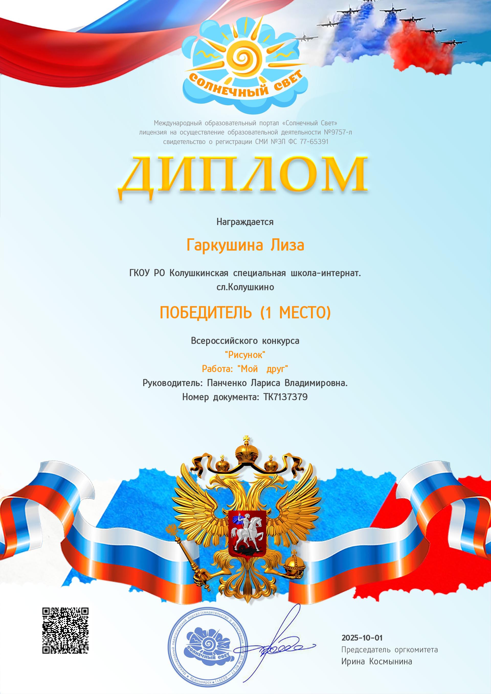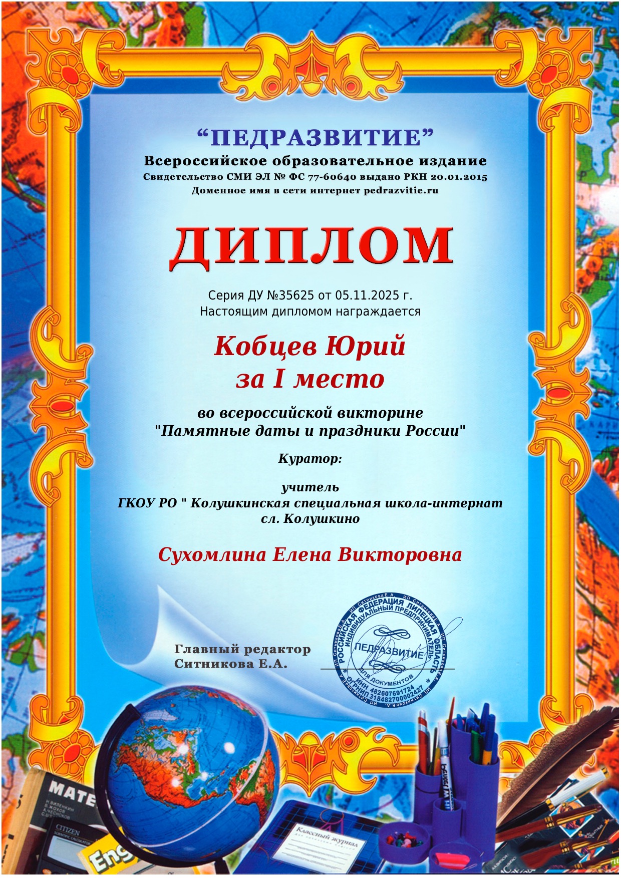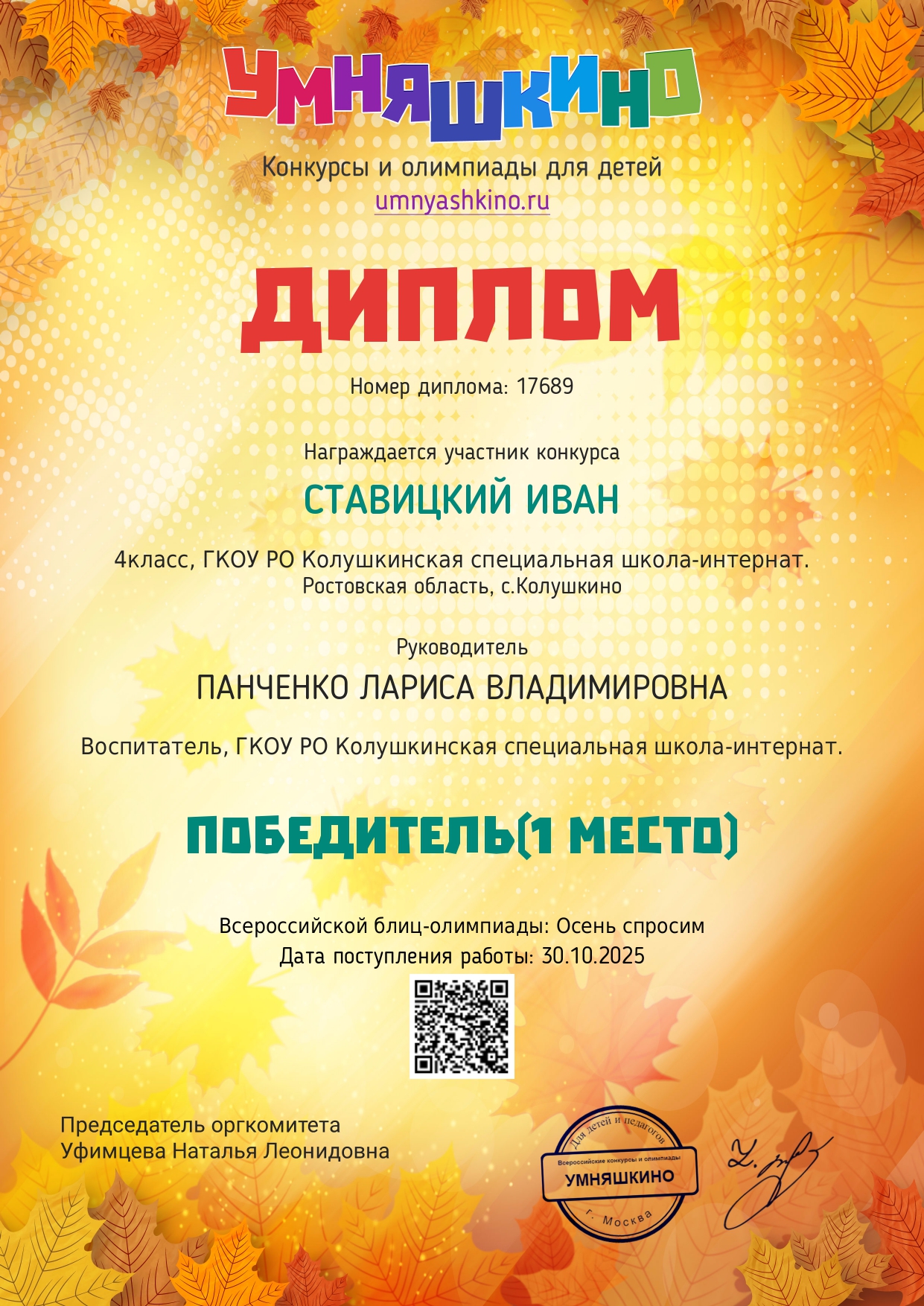 Достижения обучающихся 2025 год Всероссийский конкурс Диплом Агрызкова Михаила (скачать *..jpg) Диплом Барабанова Сергея (скачать *..jpg) Диплом Бурчик Данила (скачать *..jpg) Диплом Витюк Михаила (скачать *..pdf) Диплом Витюк Ульяны (скачать *..jpg) Диплом Гаркушина Артема (скачать *..jpg) Диплом Гаркушина Германа (скачать *..pdf) Диплом Гаркушиной Елизаветы (скачать *..jpg) Диплом Гаркушиной Светланы (скачать *..pdf) Диплом Глотова Кирилла (скачать *..jpg) Диплом Глотова Кирилла (скачать *..pdf) Диплом Даниловой Карины (скачать *..pdf) Диплом Дигонского Сергея (скачать *..pdf) Диплом Дигонской Анны (скачать *..jpg) Диплом Дьяченко Ильи (скачать *..jpg) Диплом Жарлицына Владимира (скачать *..jpg) Диплом Жучкова Константина (скачать *..pdf) Диплом Касатова Романа (скачать *..jpg) Диплом Кобцева Ивана (скачать *..jpg) Диплом Кобцева Юрия (скачать *.jpeg) Диплом Лаврентьева Вадима (скачать *..pdf) Диплом Лебедевой Виктории (скачать *..pdf) Диплом Мирошниковой Инны (скачать *..pdf) Диплом Мирошниковой Юлии (скачать *..JPG) Диплом Мирского Артема (скачать *..pdf) Диплом Николаева Ильи (скачать *..pdf) Диплом Пермяковой Светланы (скачать *..pdf) Диплом Рыбальченко Дениса (скачать *..pdf) Диплом Свиридова Николая (скачать *..pdf) Диплом Ставицкого Ивана (скачать *..jpg) Диплом Талалаева Дениса (скачать *..pdf) Диплом Талалаева Максима (скачать *..pdf) Диплом Чередниченко Андрея (скачать *..pdf) Диплом Шишкалова Михаила (скачать *..pdf) Международный конкурс Диплом Богданенко Натальи (скачать *..pdf) Диплом Букарева Артема (скачать *..pdf) Диплом Витюка Егора (скачать *..pdf) Диплом Гаркушина Романа (скачать *..pdf) Диплом Гаркушиной Юлии (скачать *..pdf) Диплом Григорьева Максима (скачать *..pdf) Диплом Данилова Сергея (скачать *..png) Диплом Добрынина Никиты (скачать *..png) Диплом Журавлева Артема (скачать *..pdf) Диплом Лебедева Сергея (скачать *..jpg) Региональный конкурс Диплом Иващенко Владимира (скачать *.jpeg) Диплом Кудьзиева Алексеея (скачать *.jpeg) Диплом Парамонова Алексея (скачать *..png)